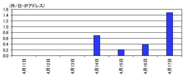 「CVE-2018-7600」に対する攻撃の観測動向(グラフ:警察庁)